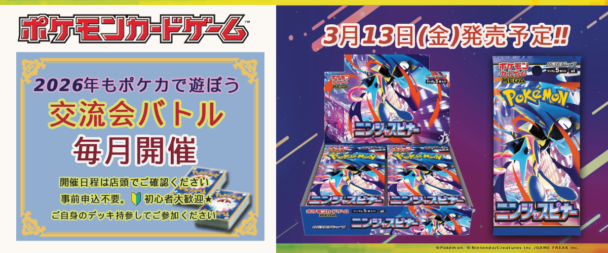 - 2025.03.16 本日開催!ポケモンカードゲーム交流会バトルは13:00~初心者歓迎どなたでも参加できますのでお気軽にお越し下さいませ。